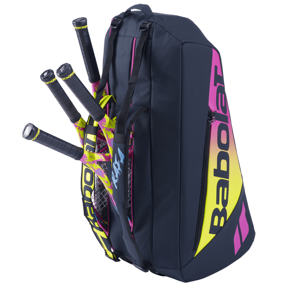 Game, set and match Match ! You've attacked hard and never given up. Just like Rafa, you've left your opponent with no chance at all.The match is now over and you want to put your winning equipment away before you leave the court. The innovative RH6 Pure Aero Rafa can stand up, giving you easier access to your equipment.Created by and for Rafa, the RH6 Pure Aero Rafa offers the very best for competitive players looking for the ultimate combination of style and performance. This fully insulated bag has 2 big compartments, meaning you can arrange and protect up to 6 racquets and 2 pairs of shoes in their own section. The bag has a robust, waterproof and hard-wearing outer and a lining made of our new white highly durable insulated material. Developed for the most exacting players like Rafa, the RH6 Pure Aero Rafa gives your equipment maximum protection. This will keep your strings tight and protected from temperature fluctuations. Team BABOLAT pro players may play with a customized or different model than the equipment depicted.